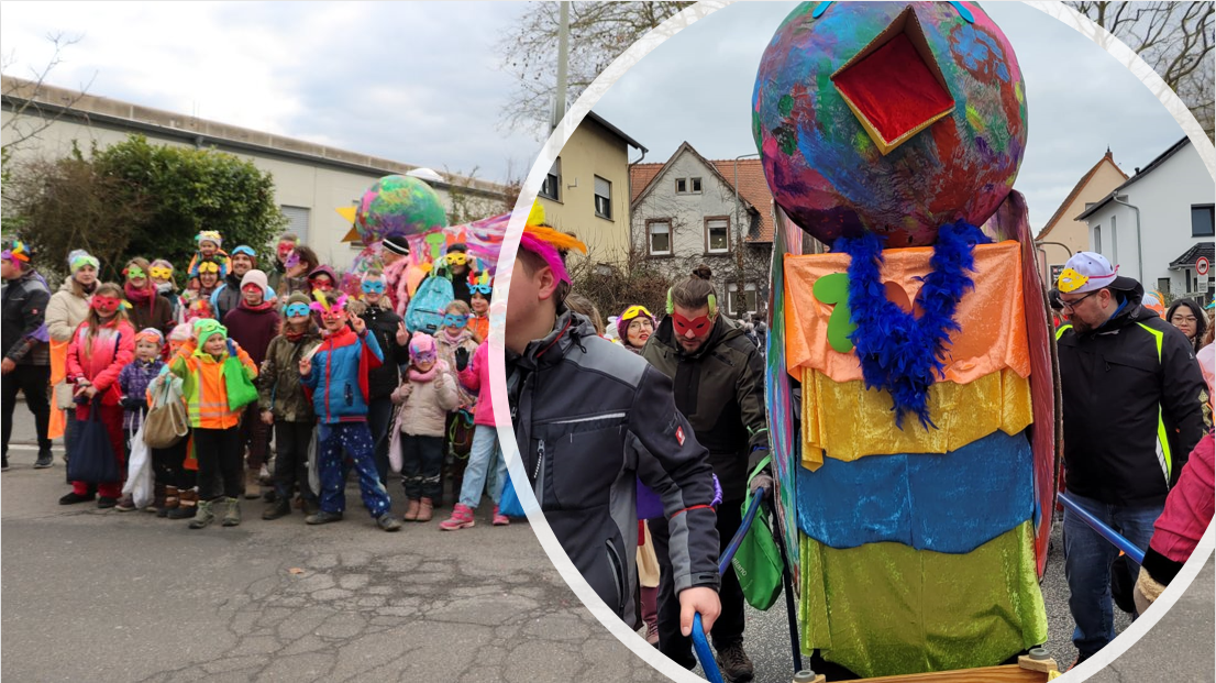 Beim Umzug selbst war der Wagen, auf dem ein bunter Vogel thronte, nicht zu übersehen und sicher ein echtes Highlight des Umzugs. Jedenfalls wurde der Wagen, der die Gruppe anführte, extrem häufig als Fotomotiv abgelichtet.